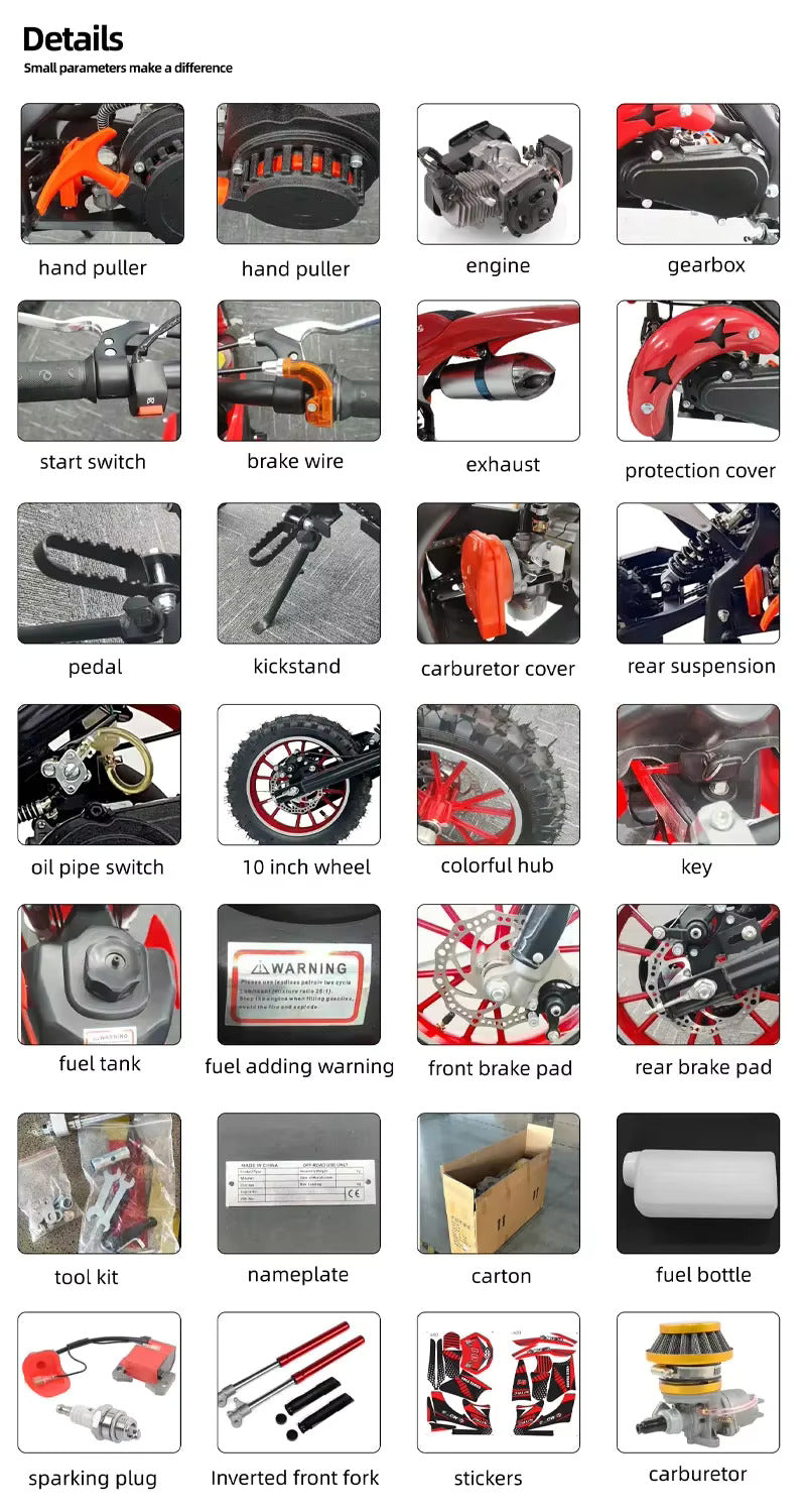 ● Engine: 49cc, 2-stroke, 44-6 large cylinder